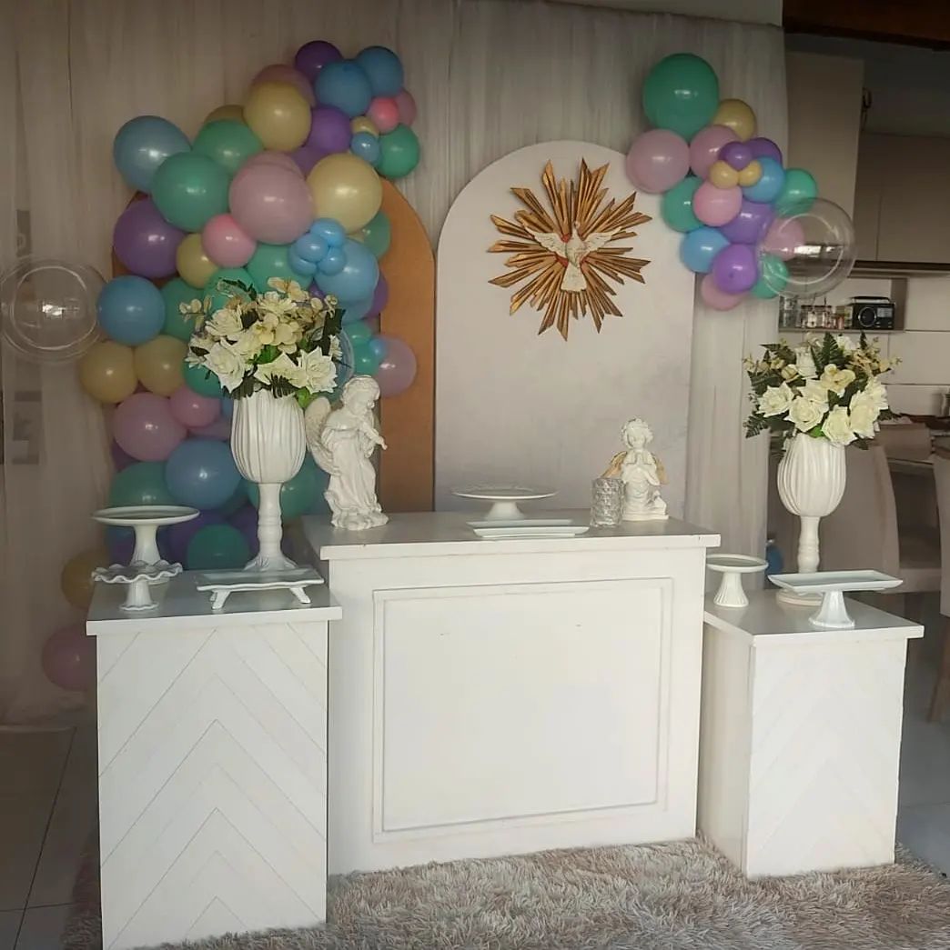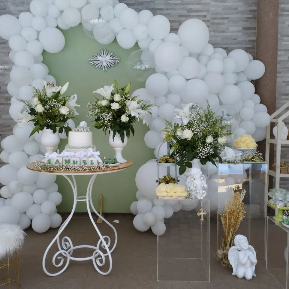 Decoração de batizado vem refletir o quanto é lindo trabalhar com balões de cores únicas, com variedade de tamanho e modelos, fazendo a mágica acontecer.